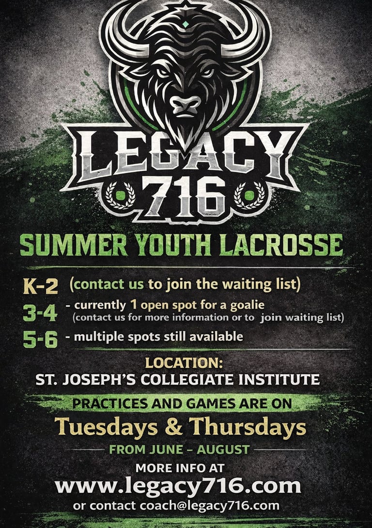All practices and home games will be played at St. Joseph’s Collegiate Institute (845 Kenmore Ave. Buffalo, NY 14223). Away games will be played at various locations through WNY.